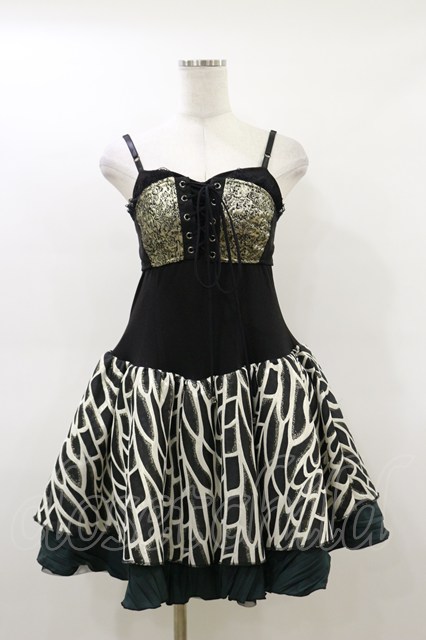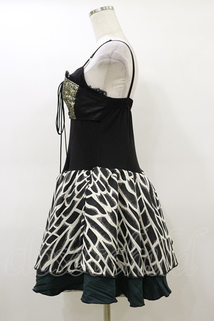 Qutie Frash / キャミワンピース 黒×緑 H-26-02-25-1037-QU-OP-KB-ZH [2100030000018389-H-26-02-25-1037-QU-OP-KB-ZH]