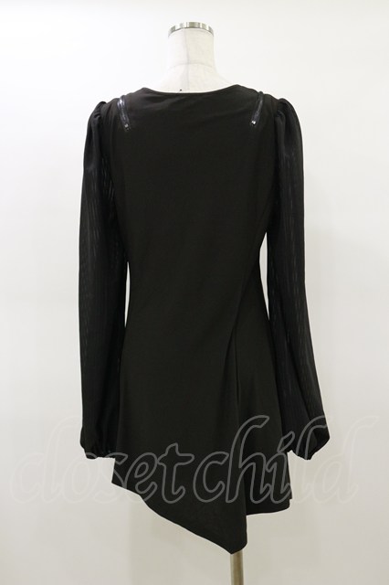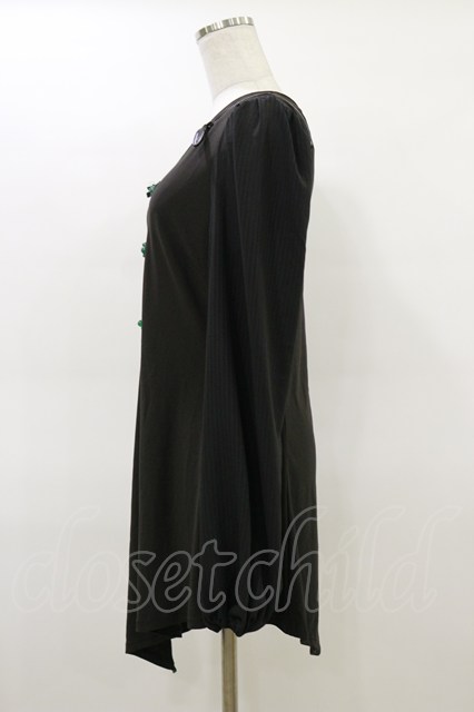Qutie Frash / チャイナパフスリーブチュニック ブラック×グリーン H-26-02-25-1028-QU-TO-KB-ZH [2100030000074096-H-26-02-25-1028-QU-TO-KB-ZH]