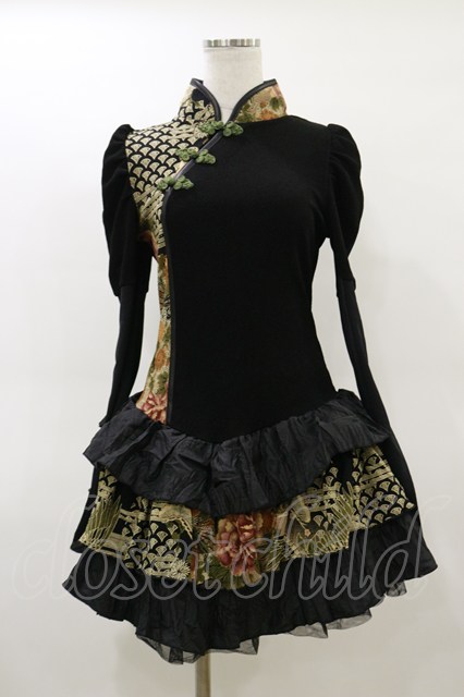 Qutie Frash / チャイナワンピース 黒 H-26-02-25-1038-QU-OP-KB-ZH [2100030000088149-H-26-02-25-1038-QU-OP-KB-ZH]