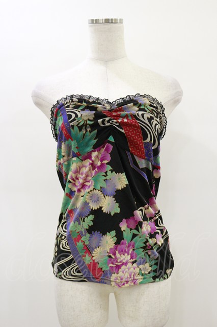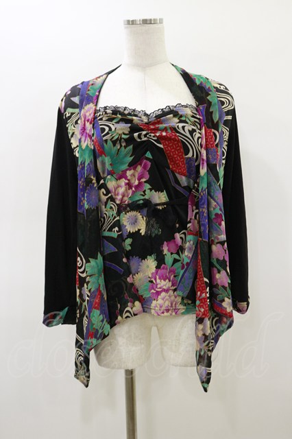 Qutie Frash / 和柄ベアトップ&カーディガン 黒 H-26-03-01-002-QU-TO-KB-ZH [2100030000088185-H-26-03-01-002-QU-TO-KB-ZH]