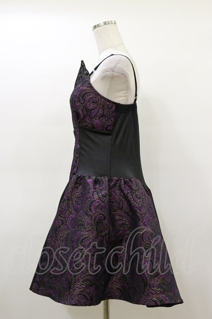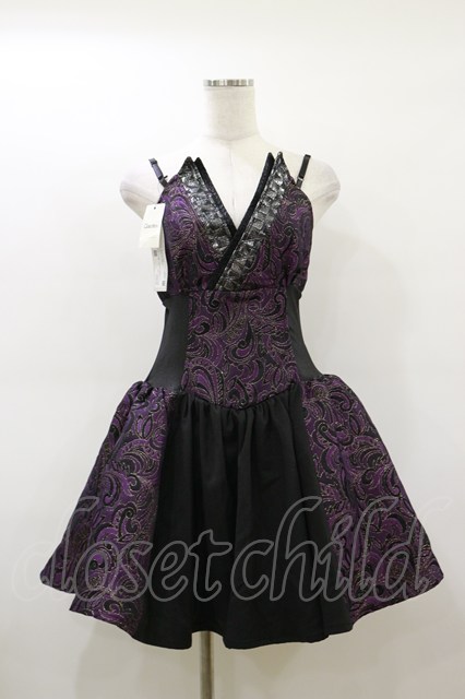 Qutie Frash / ジャガードサーキュラーワンピース 黒×紫 H-26-03-01-024-QU-OP-KB-ZH