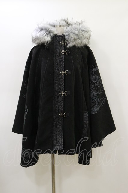 Qutie Frash / ファーフードポンチョコート 黒 H-26-03-01-033-QU-CO-KB-ZH [2100030000088167-H-26-03-01-033-QU-CO-KB-ZH]