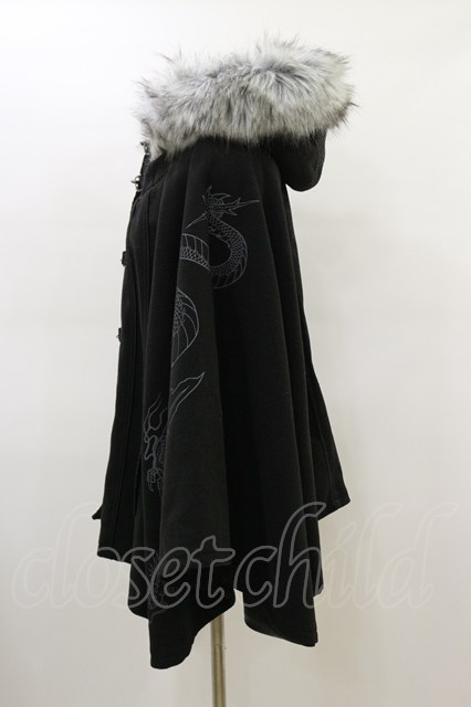 Qutie Frash / ファーフードポンチョコート 黒 H-26-03-01-033-QU-CO-KB-ZH
