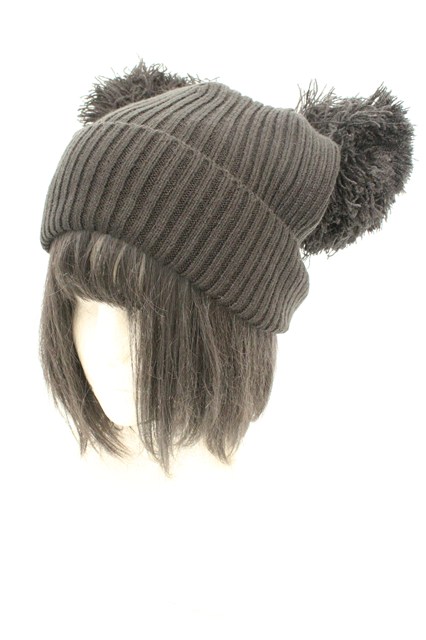 GLAD NEWS / ダブルぽんぽん付きニットキャップ ブラック O-26-02-24-2025-GL-AC-IG-OS