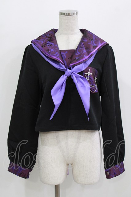 BLOOD SUPPLY(海外ブランド) / Purple Butterfly Gothic Japanese Bad Girl JK Short Sleeves tops L 黒×紫 H-26-02-24-1008-GO-TO-KB-ZH [2100030000088035-H-26-02-24-1008-GO-TO-KB-ZH]