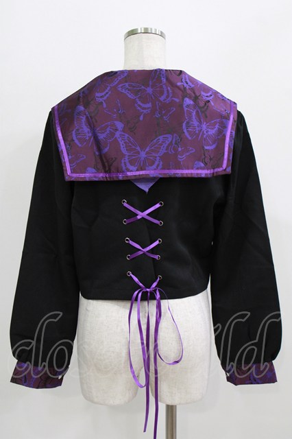BLOOD SUPPLY(海外ブランド) / Purple Butterfly Gothic Japanese Bad Girl JK Short Sleeves tops L 黒×紫 H-26-02-24-1009-GO-TO-KB-ZH [2100030000088034-H-26-02-24-1009-GO-TO-KB-ZH]