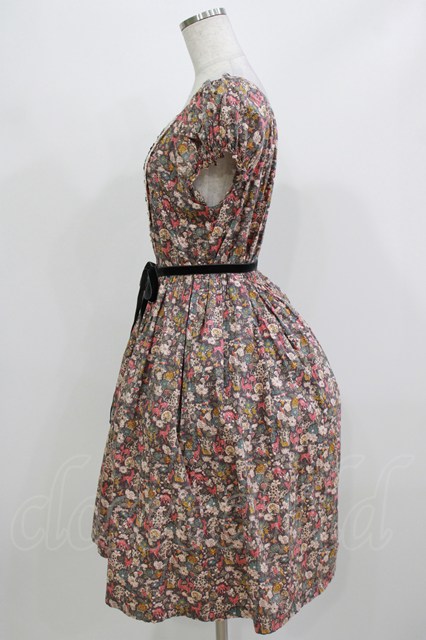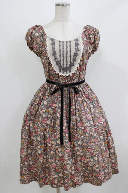Jane Marple / メルヘンプリントのスモックワンピース グレー H-26-02-27-003-JM-OP-KB-ZH