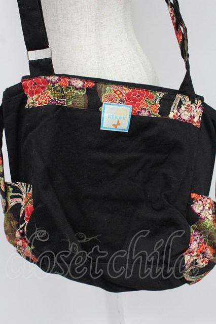 kikou / レースアップ和柄ショルダーバッグ ブラック T-26-03-02-030-GO-BG-SA-ZT