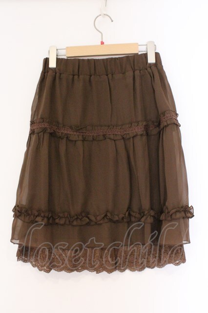 axes femme / 裾レース使いシフォンスカート ブラウン O-26-02-26-093-AX-SK-IG-OS