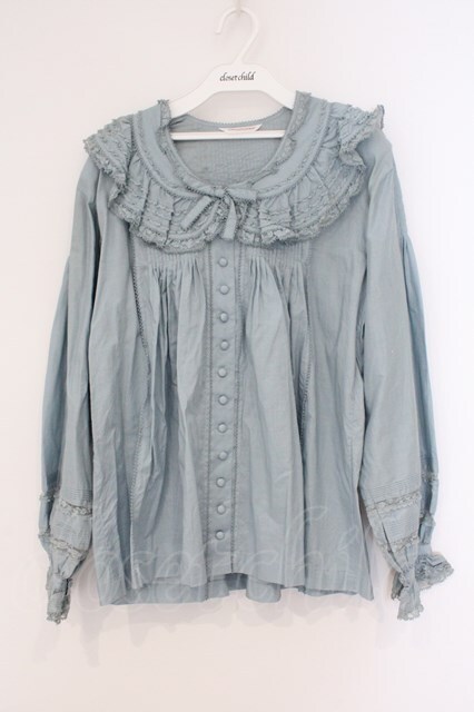 WONDERFUL WORLD / レースフリルカラータックブラウス ブルー O-26-02-26-040-LO-BL-IG-OS