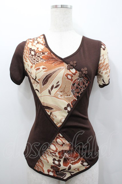 Ozz On / ナナメチャイナ切替半袖トップス ブラウン I-26-02-25-031-OO-TO-SA-ZI [2100060000050487-I-26-02-25-031-OO-TO-SA-ZI]