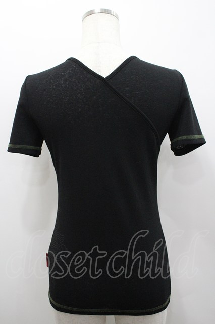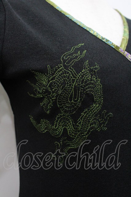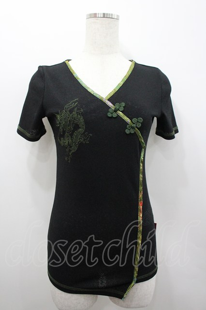 Ozz On / チャイナボタン&龍刺繍半袖トップス 黒X緑 I-26-02-25-033-OO-TO-SA-ZI [2100060000050488-I-26-02-25-033-OO-TO-SA-ZI]