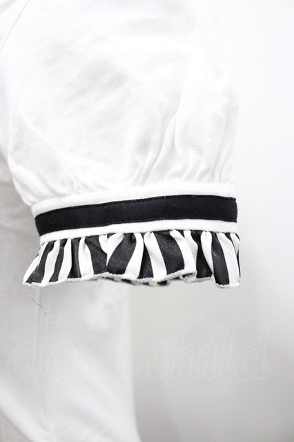 PEACE NOW / ストライプリボン半袖カットソー 白X I-26-02-25-017-PU-TO-SA-ZI
