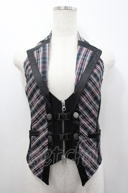 Ozz Croce / フロントZIPチェックベスト 黒チェック I-26-02-25-034-OO-TO-SA-ZI
