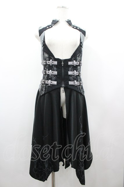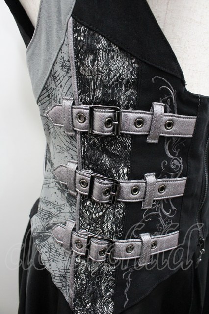 Ozz Croce / サイドベルトデザインロングベスト 黒Xシルバー I-26-02-25-076-OO-PA-SA-ZI