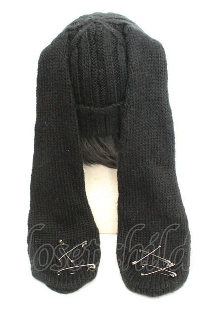 REFLEM / 安全ピン付きうさ耳ニットキャップ ブラック O-26-02-26-1040-PU-AC-IG-OS