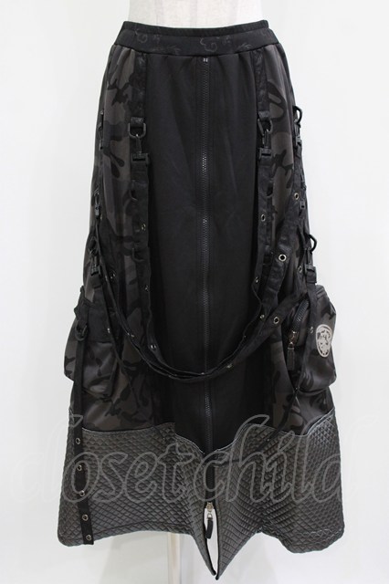 Qutie Frash / ミリタリーロングスカート 黒 H-26-03-02-029-QU-SK-KB-ZH [2100030000088262-H-26-03-02-029-QU-SK-KB-ZH]