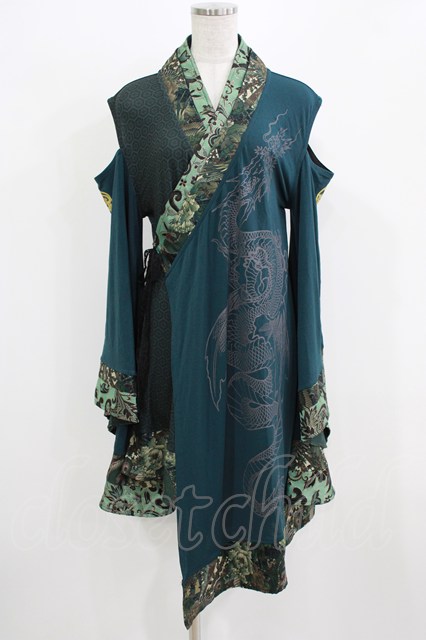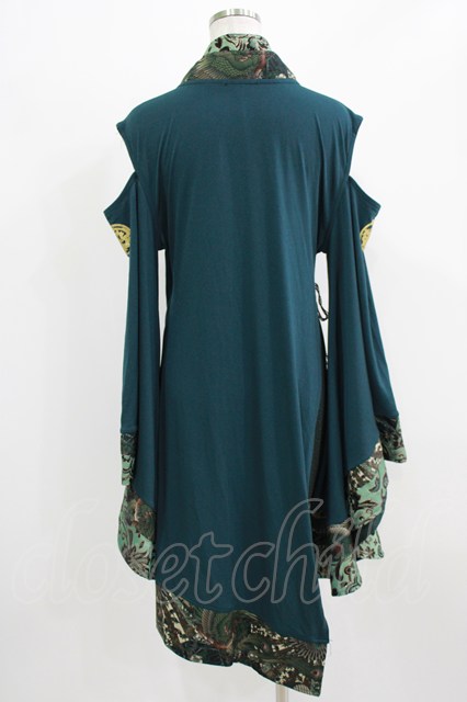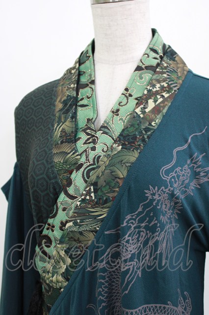 Qutie Frash / 肩開き着物カーディガン 緑 H-26-03-02-049-QU-TO-KB-ZH [2100030000088223-H-26-03-02-049-QU-TO-KB-ZH]