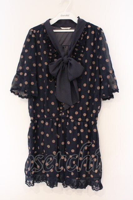 axes femme / ドットフロッキーボウタイワンピース M ブルー O-26-02-27-025-AX-OP-IG-OS