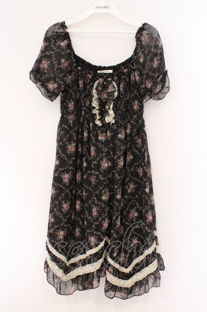 axes femme / 小花柄ワンピース M クロ O-26-02-27-011-AX-OP-IG-OS
