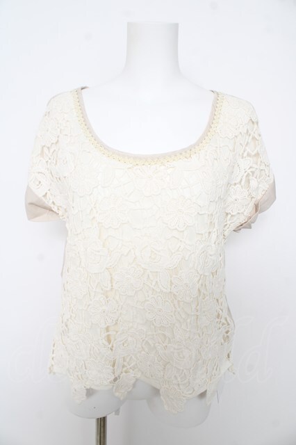 axes femme / レースデザイン半袖プルオーバー 生成り Y-26-02-27-013-AX-BL-SZ-ZY