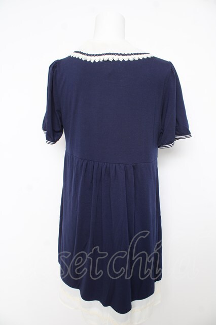 axes femme / 襟取り外しAラインチュニック 紺 Y-26-02-27-031-AX-OP-SZ-ZY