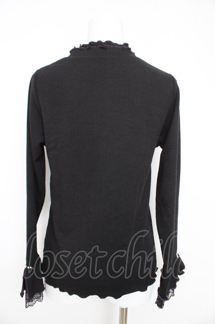 axes femme / 袖レース配色メローフリルプルオーバー 黒 Y-26-02-27-042-AX-TO-SZ-ZY