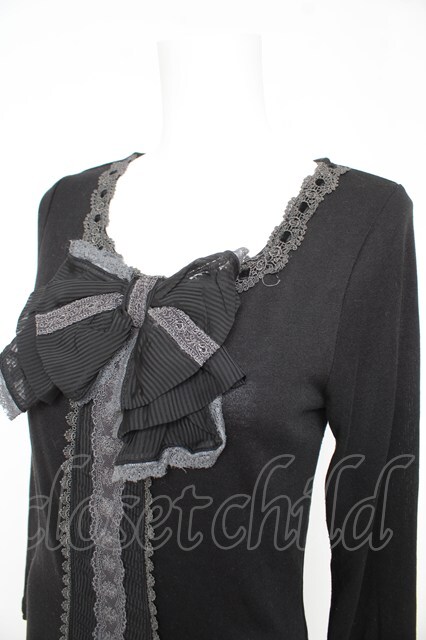 axes femme / ストライプBIGリボンカットソー 黒 Y-26-02-27-043-AX-TO-SZ-ZY
