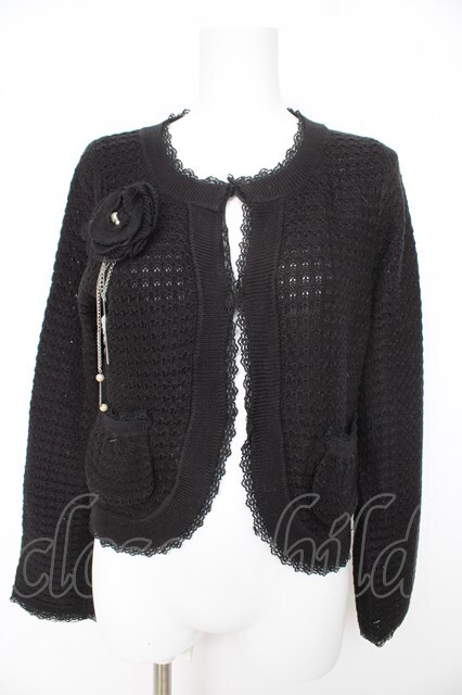 axes femme / コサージュ付きカーディガン 黒 Y-26-02-27-046-AX-TO-SZ-ZY