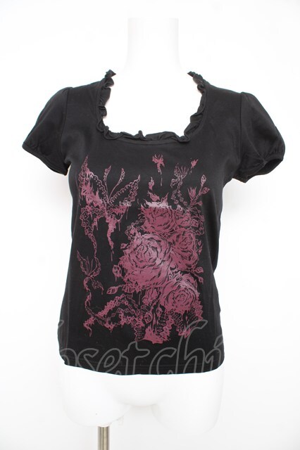 BPN / バラx蝶プリント半袖カットソー 黒 Y-26-02-27-054-GO-TO-SZ-ZY