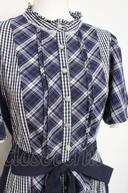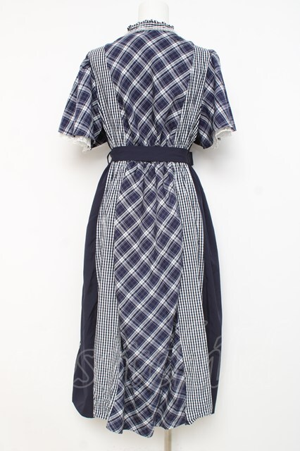axes femme / チェック切替パッチワークワンピース ネイビー Y-26-02-27-108-AX-OP-SZ-ZY