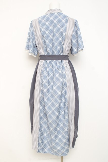 axes femme / チェック切替パッチワークワンピース F サックス Y-26-02-27-109-AX-OP-SZ-ZY