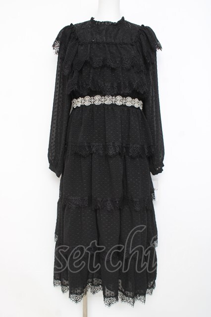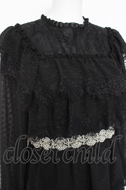 axes femme NOSTALGIE / ドットドビー×レースワンピ M 黒 Y-26-02-27-113-AX-OP-SZ-ZY