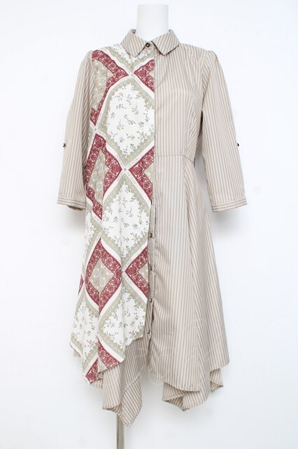 axes femme / 柄切替イレヘムシャツワンピース M ベージュ Y-26-02-27-114-AX-OP-SZ-ZY [2100070000058299-Y-26-02-27-114-AX-OP-SZ-ZY]