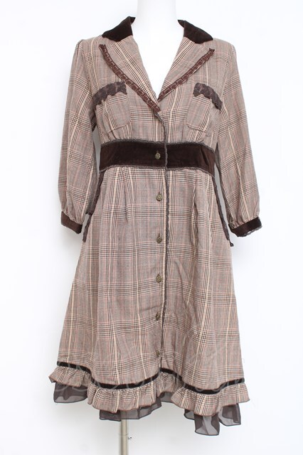 axes femme / チェック柄前あきワンピース M 茶 Y-26-02-27-131-AX-OP-SZ-ZY