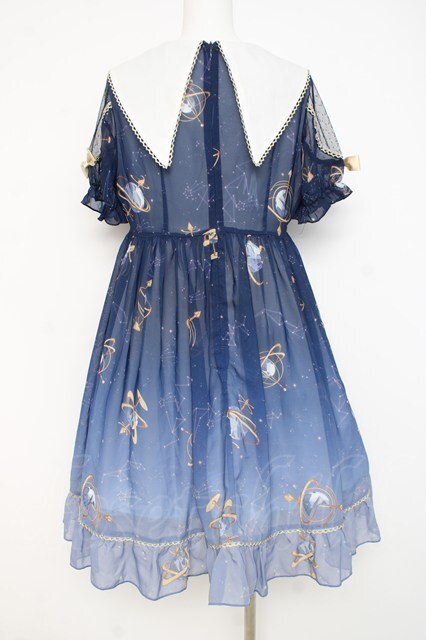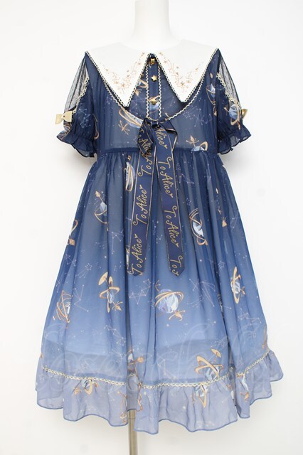 To Alice / プラネタリウム刺繍入り半袖ワンピース M 紺 Y-26-02-27-155-LO-OP-SZ-ZY