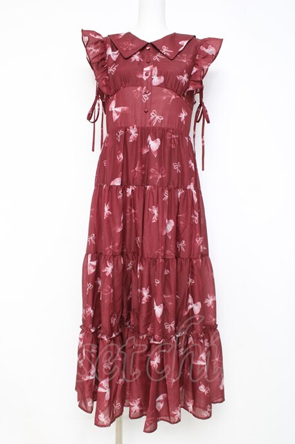 evelyn / オリジナルリボン柄ワンピース ワイン Y-26-02-27-165-LO-OP-IG-ZY [2100070000062399-Y-26-02-27-165-LO-OP-IG-ZY]