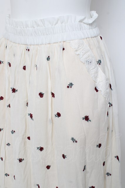 axes femme / ミニローズ刺繍ロングスカート F 白 Y-26-02-27-190-AX-SK-SZ-ZY