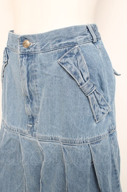 axes femme / リボン×プリーツデニムスカート サックス Y-26-02-27-199-AX-SK-SZ-ZY