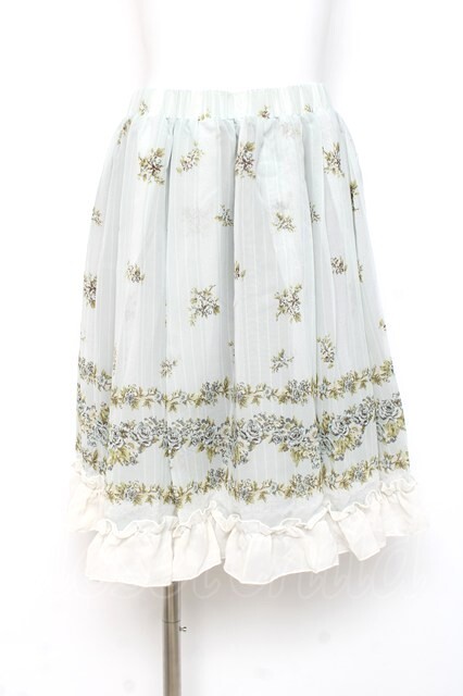 axes femme / ローズ&ストライププリントスカート ミント Y-26-02-27-205-AX-SK-SZ-ZY