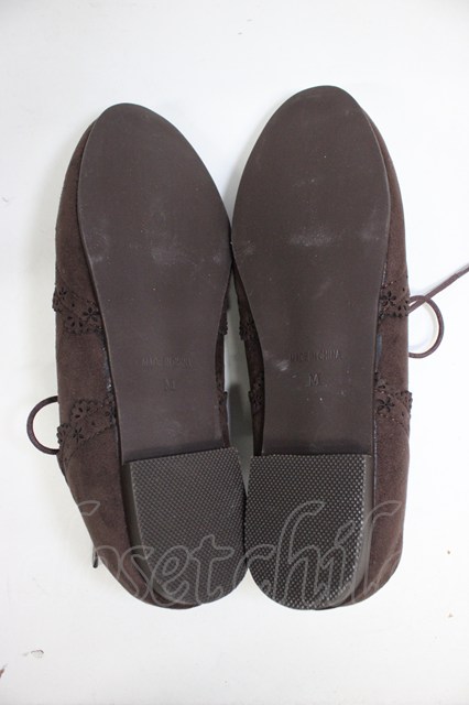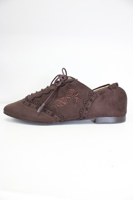 axes femme / スエードバラ刺繍バブーシュ M チャ T-26-03-01-004-AX-SH-SA-ZT