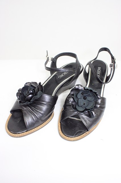 INGEBORG / フラワークリップ付きギャザーサンダル XL 黒 T-26-03-01-031-LO-SH-SA-ZT [2100060000035799-T-26-03-01-031-LO-SH-SA-ZT]