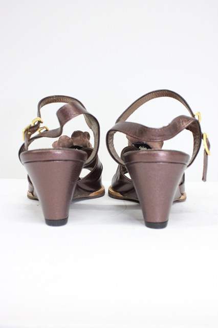 INGEBORG / フラワークリップ付きウェッジソールサンダル 約24.5CM(内側採寸) ブラウン T-26-03-01-032-LO-SH-SA-ZT [2100060000035801-T-26-03-01-032-LO-SH-SA-ZT]