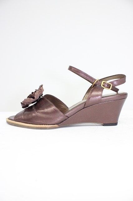 INGEBORG / フラワークリップ付きウェッジソールサンダル 約24.5CM(内側採寸) ブラウン T-26-03-01-032-LO-SH-SA-ZT