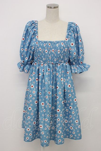Candy Stripper / TINY DAISY PUFF SLEEVE DRESS 2 青X白 T-26-03-06-042-PU-OP-SA-ZT [2100060000041789-T-26-03-06-042-PU-OP-SA-ZT]