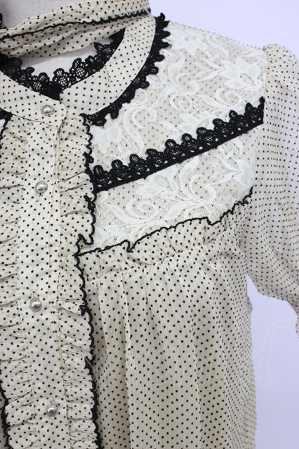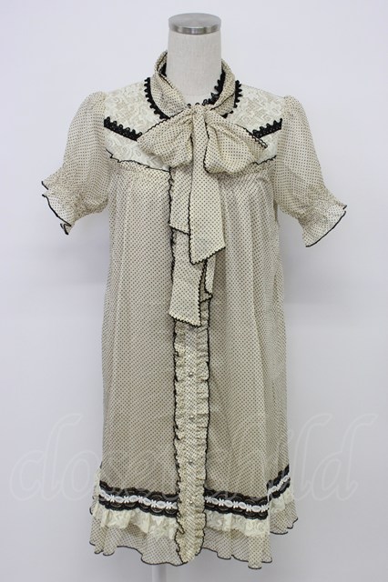 axes femme / フロッキードットブラウスワンピース アイボリーX黒 T-26-03-06-044-AX-OP-SA-ZT