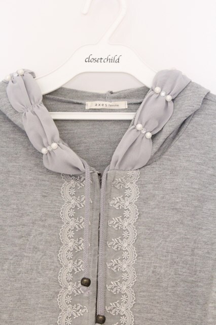 axes femme / ビジュー使いZIPパーカー M グレー O-26-03-01-024-AX-TO-OW-OS
