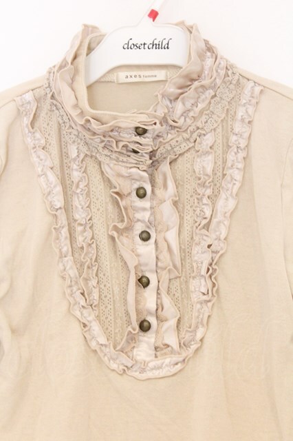 axes femme / ブローチ付きブラウス風プルオーバー M ベージュ O-26-03-01-027-AX-TO-OW-OS
