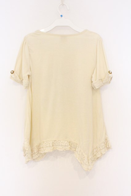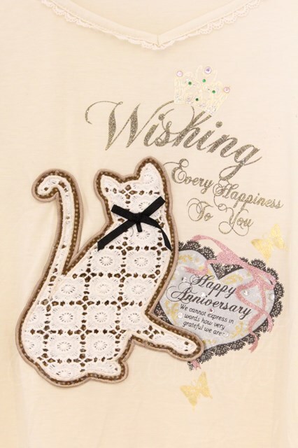 axes femme / レース猫ワッペンTシャツ M キナリ O-26-03-01-035-AX-TO-OW-OS