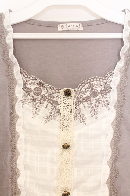 axes femme / 胸元レース重ね着風トップス M グレージュ O-26-03-01-023-AX-TO-OW-OS [2100080000071945-O-26-03-01-023-AX-TO-OW-OS]